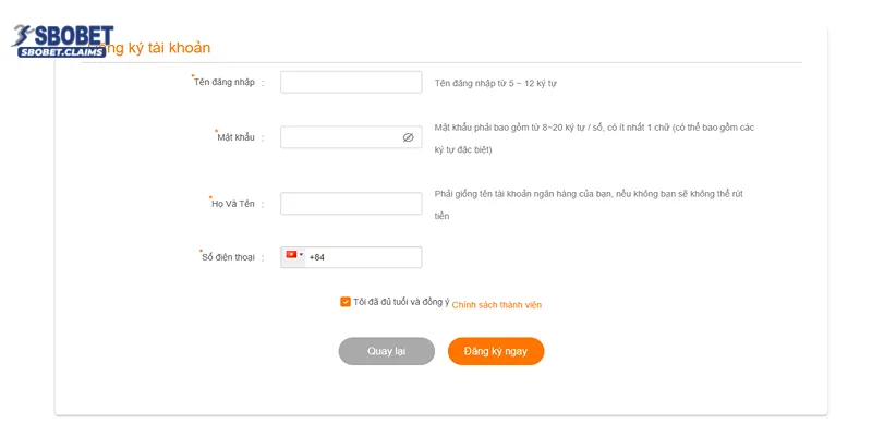 Giao diện đăng ký sẽ hiện ra với các trường yêu cầu thông tin cá nhân. Bạn cần nhập chính xác họ tên, địa chỉ email, số điện thoại, tên đăng nhập và mật khẩu. Đây là bước rất quan trọng vì các thông tin này sẽ được sử dụng để xác minh tài khoản và phục vụ trong quá trình giao dịch sau này.